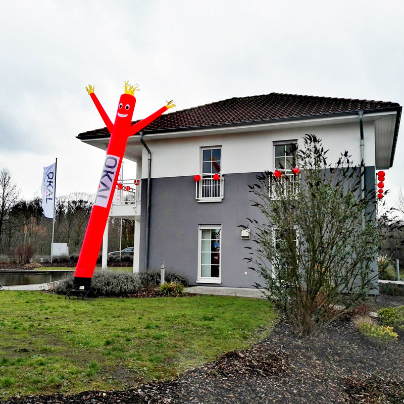We did a new air dancer for Okal company. This 4m air puppet, smiling friendly all day, even the weather was rainy.